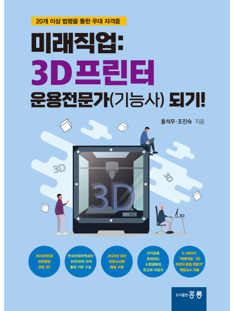 본 교재는 미래의 중요한 신산업분야로 자리매김한 3D Printing의 이론, Modeling 실습, 3D Printer 출력, 3D Printing 산업에 대하여 학습을 할 수 있도록 구성되어 있다. 또한, 공무원 임용시험 등 22개의 국가 법령을 통하여 우대 받을 수 있는 국가 기술자격증인 “3D프린터 운용 기능사” 자격증 1 을 취득할 수 있도록, 내용 구성이 되어 있으며, K-MOOC (Korea Massive Open Online Cource)를 통하여 책의 내용에 대한 온라인 강의를 제공할 예정이다.